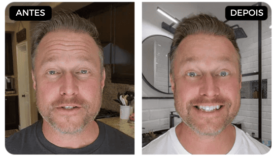 "Notei que meu rosto estava começando a ficar flácido, principalmente ao redor do maxilar. Olhei no espelho e vi meu pai me encarando. Depois de usar por um mês, meu maxilar ficou mais definido e a flacidez diminuiu visivelmente. Não precisei de cirurgia".